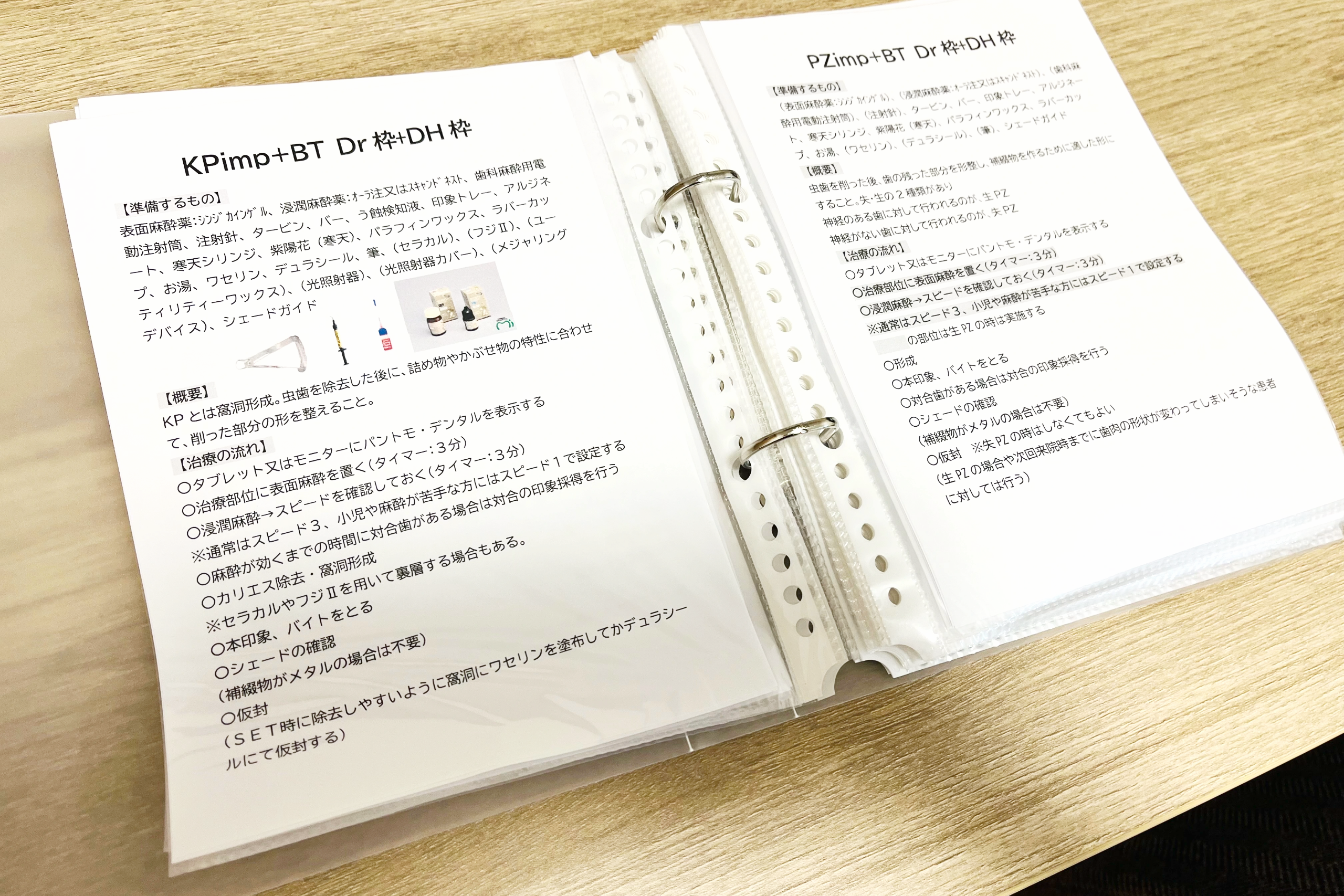 どの診療でどの器具を使うか一目でわかる「写真付きオリジナルマニュアル」を完備。さらに、日頃から現場で活用できる「DH専用テキスト」も用意しています。これらを見ればブランクがある方も安心。まずは見学・同席からスタートし、無理なく仕事に慣れていただけます。